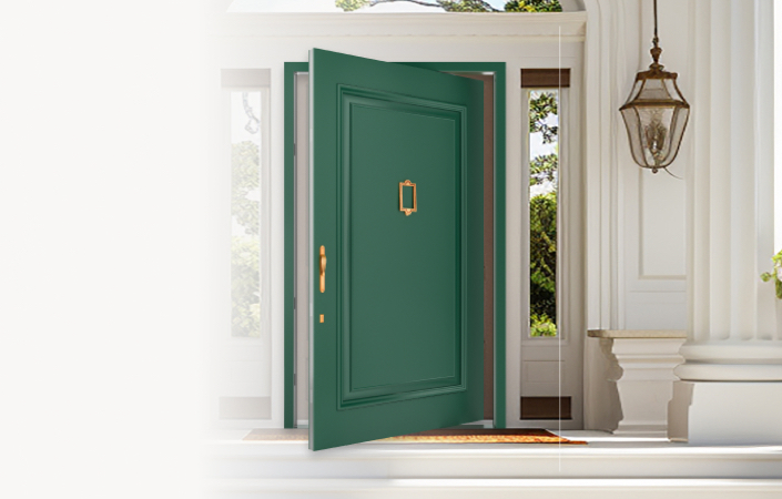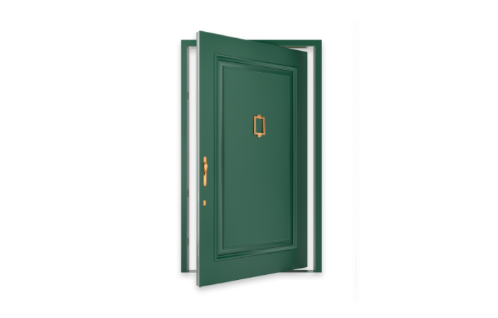 PIVOT 16 to wypełnienie drzwiowe w intensywnym odcieniu zieleni. Przestrzeń wypełnienia drzwiowego została